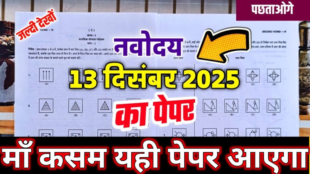 नवोदय 13 दिसंबर पेपर Navodaya 6th Entrance exam Paper 2025 Navodaya 13 December Exam Model Paper